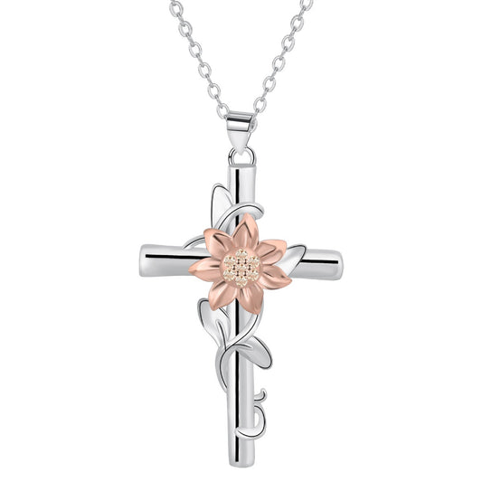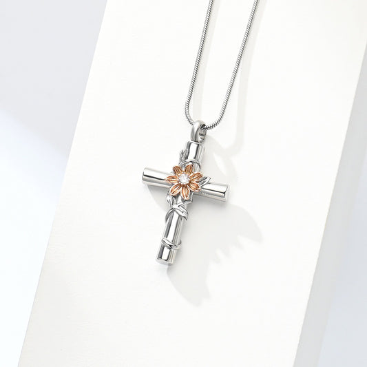 STAINLESS STEEL SUNFLOWER CROSS NECKLACE